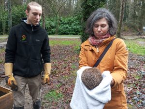 On prend soin des hérissons en entretenant leurs abris et enclos, en leur donnant à manger …