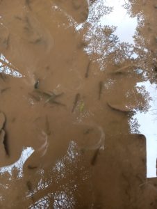 Il y a même un adulte dans l’eau. Il a un gros ventre, ce doit être une femelle prête à pondre d’autres oeufs.