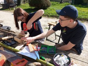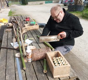 On coupe des bambous, des planches, on visse, on colle …