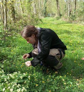 C’est maintenant le printemps, et on se penche toujours pour observer la vie pas si minuscule au sol. Les chemins boueux ont laissé la place à la moquette de pâquerettes et boutons d’or.