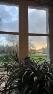 L’esplanade n’est pas qu’une pâture pour les brebis. Nous les rentrons dans leur enclos pour laisser la place aux chiens que nous faisons jouer et courir.