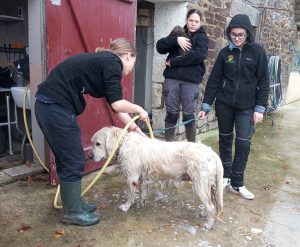 Allez, zou : après le bain dans l’étang, c’est la douche au chenil !