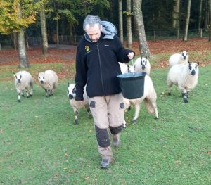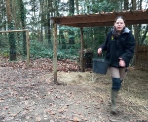 Il faut dire que nous n’arrivons pas les mains vides. Nous sommes chargés d’attentions pour elles, avec un seau plein de délicieux granulés !