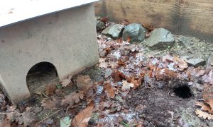 Il a fallu règler un problème d’intrusion dans l’enclos, puisqu’un rongeur a creusé un tunnel pour manger les croquettes de Pixie.