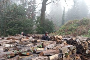 Et comme le temps est humide et frais, on va aussi chercher du bois pour faire du feu dans la cheminée.